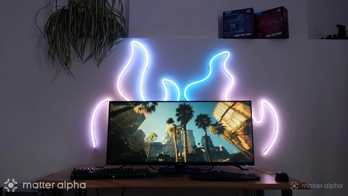 That’s where the Matter-compatible Govee AI Sync Box 2 comes in. It analyzes your HDMI input, then either duplicates the edges of the display to a strip of LEDs mounted on your monitor as well as two side lighting bars, or recognizes special in-game events to display custom effects. Since this all happens in hardware, you don’t drop any frames, and the latency is minimal.
