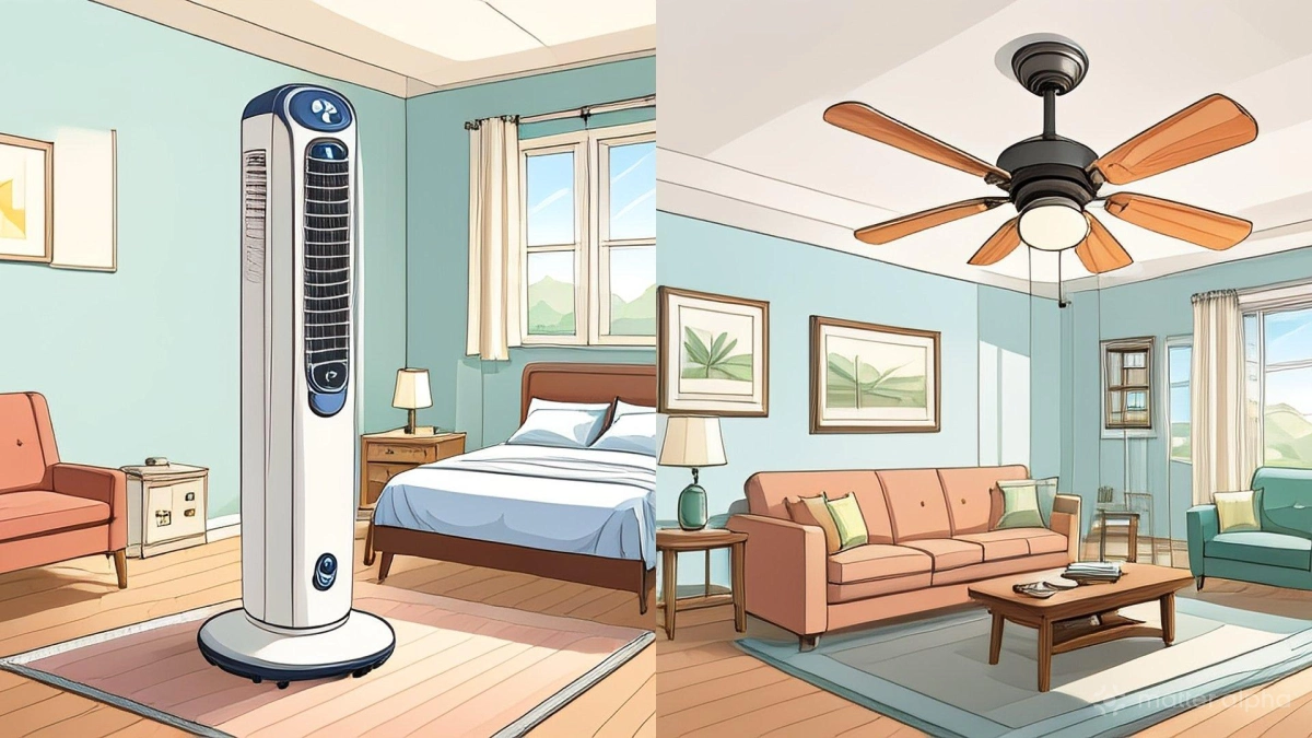 - Type: Tower and table fans are great for smaller areas but can be noisy. Ceiling fans provide better air circulation but they are limited to a single room.