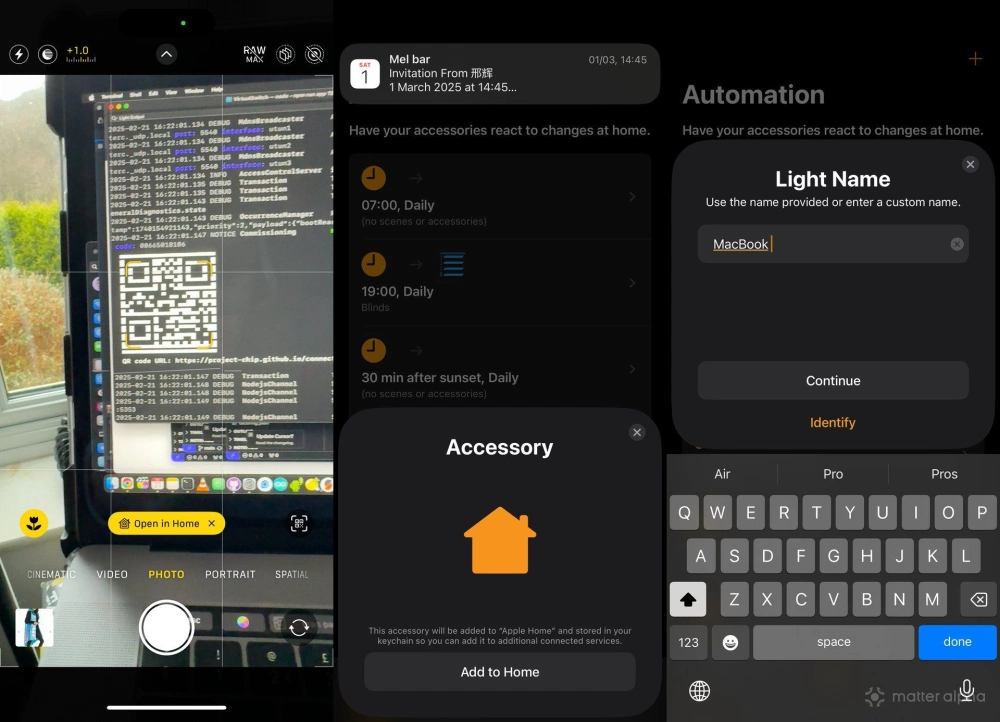 Quick tip: if you're using iOS, just open up the camera app and point it at the QR code. It'll automatically recognize it as a smart home device, so you can tap the action link and add it to Apple Home without going via the usual Home -> Add Accessory -> Scan steps.