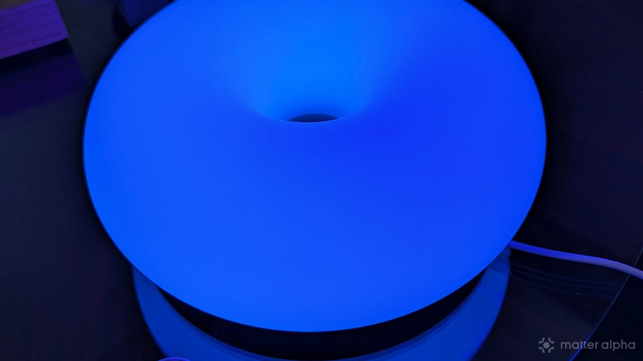 Designed in collaboration with Sabine Marcelis, the original VARMBLIXT lamp featured a distinctive donut shape and an amber finish. The new smart version maintains this physical design while introducing significant hardware revision. Instead of the smooth yellow finish found on the original model, the Matter version features a matte white frosted glass exterior.