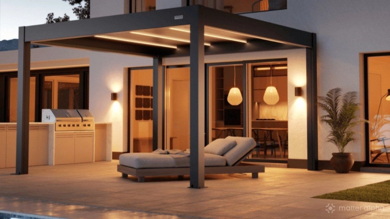 Matter has support for connected pergolas, which means you can remotely adjust the louvers (those bars across the top of the pergola that swivel in mechanical units) to adjust sunlight and shade. It also supports lighting and heating options within the Pergolux S3 Pergolas.