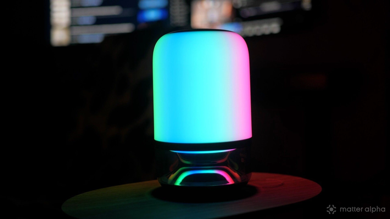 In this case, that meant I had absolutely no idea that the Table Lamp 2 Pro had a battery in it. So there I am, having recorded some B-roll, tested out the maximum volume level, pressed to turn it off, unplugged it, put my phone in my pocket—and as I was carrying it over to put it on the table and tidy up, imagine my surprise to find it suddenly blaring out my music. I must have hit the play button from the lock screen. Scared the bejesus out of me, actually. Good thing I have deep carpets, or this would have shattered.